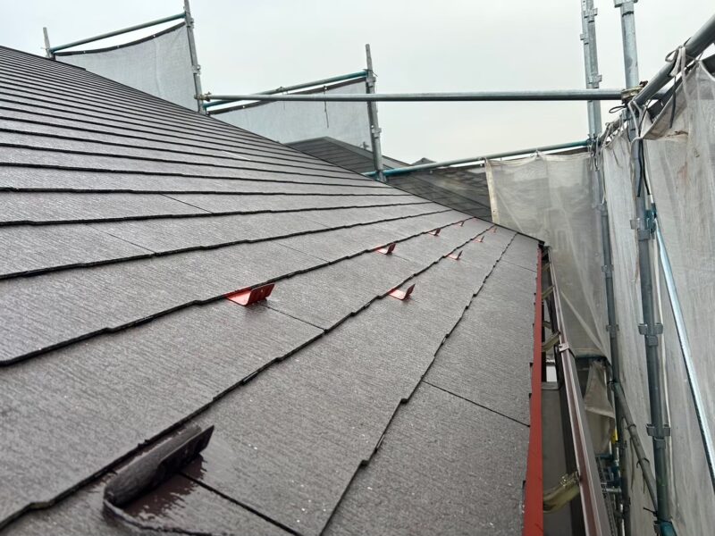 屋根材は紫外線などの影響で劣化すると、塗料を吸い込みやすい状態になっていることが多いため、そのまま上塗りすると塗膜が均一に形成されず、剥がれやムラの原因に。