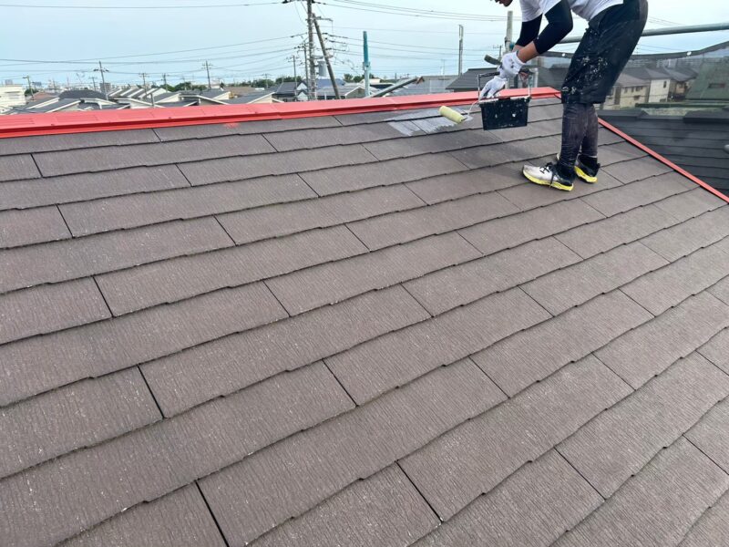 下塗り塗装で、屋根材と上塗り塗料の密着性を高めることが重要になります。