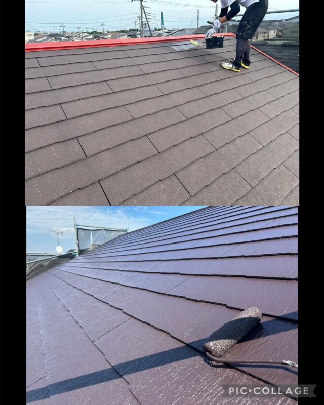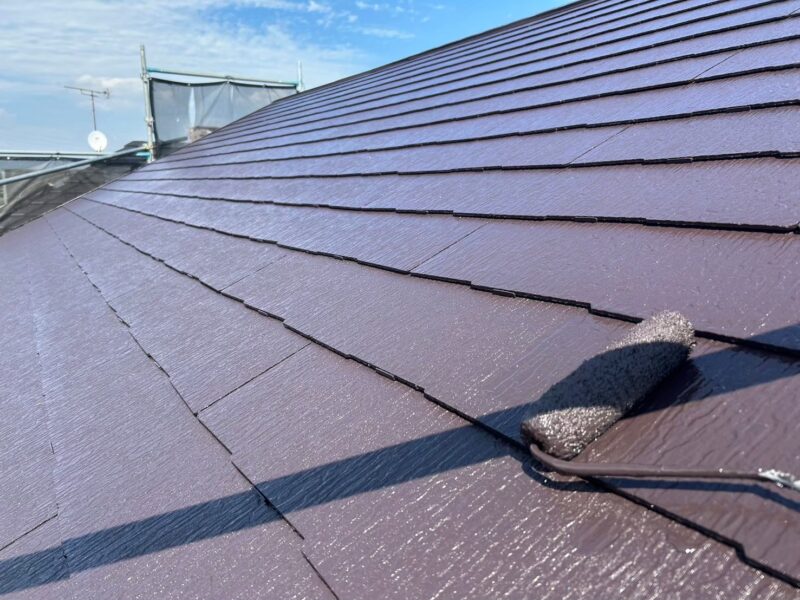 実際に屋根材を紫外線等から保護する役割を持つ塗料ですので、厚みを持たせることが大切。