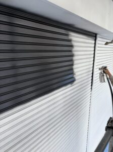 雨戸も、凹凸が大きくローラーなどできれいに仕上げることができないため、吹き付けです。