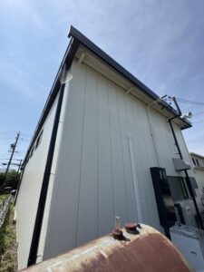 白い外壁にはサビや色褪せがみられ、進行してはおらずとも、目立ってしまっています。