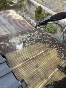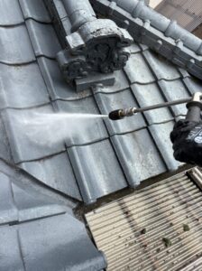 苔の付着などが多く見受けられたため、塗装の前の高圧洗浄は特に入念に。