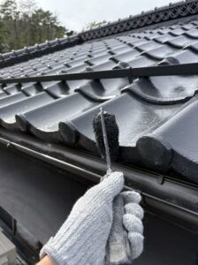 瓦を1枚ずつ、溜まりや垂れのないよう均一に塗り広げます。